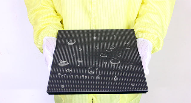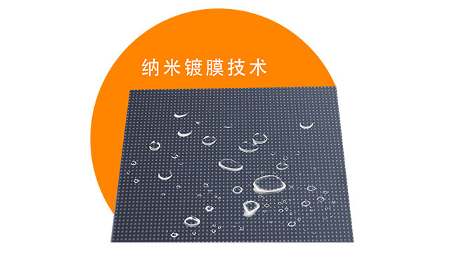 膜层仅20纳米,不会对大屏观看视角、对比度等效果带来任何影响。表面防水性能高达IPX5,在耐潮气之外,还具有耐化学试剂,耐盐雾腐蚀,耐硫化物腐蚀等优势,可大大减少LED显示屏在高湿环境下因灯管受潮而引起毛毛虫故障的几率。