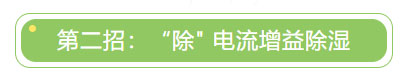 在梅雨季节、回南天等潮湿天气,客户只需要打开除湿设置,潮气就会在电流增益的作用下,离开产品内部。